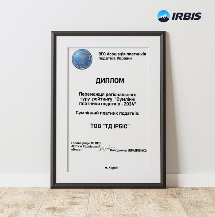 Мы рады сообщить, что ООО «ТД ИРБИС» стало победителем регионального тура рейтинга «Добросовестные налогоплательщики – 2024», который ежегодно организует ВГО «Ассоциация налогоплательщиков Украины».